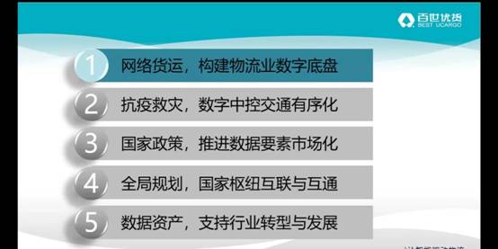 张海岐着重讲了第五点内容,他认为“业务数据化升级到数据业务化”是我们今后的发展方向,以及物流未来的格局将会朝着高度产业聚集方面发展。我们要充分认识到数据资产的价值,这将是企业高质量发展的坚实基础。