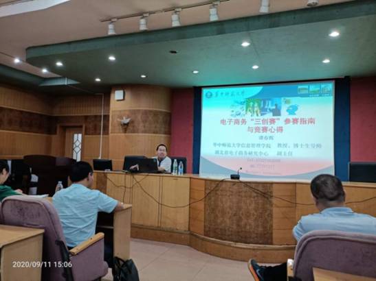 9月11日下午,华中师范大学信息管理学院谭春辉教授应邀来beat365商学院讲学,作题为“电子商务三创赛参赛指南与竞赛心得”的分享会。分享会由商学院院长朱强教授主持,商学院副院长杨怀宏副教授、刘加林教授,电子商务教研室主任贺桂和副教授出席了分享会,商学院部分老师、2018级和2019级电子商务专业全体学生认真聆听了分享报告。