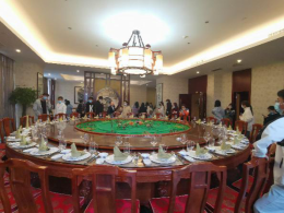 本次参观分成两个环节,分别是酒店参观、酒店职业经理人讲座和访谈。在第一个环节,房务总监和餐饮总监带领同学们参观了酒店的客房与餐饮。房务部李总非常细致地向大家介绍了包括总统套房在内的各种客房的房型、定价标准、装修和房间设施。餐饮部李总带领大家参观了宴会厅和各类型的包厢,包括可容纳30人就餐的豪华大餐桌,杯花、糖艺雕刻等等,李总还给大家展示了精湛的摆台技艺,这些都处处体现了418华天大酒店宾客至上的服务理念。