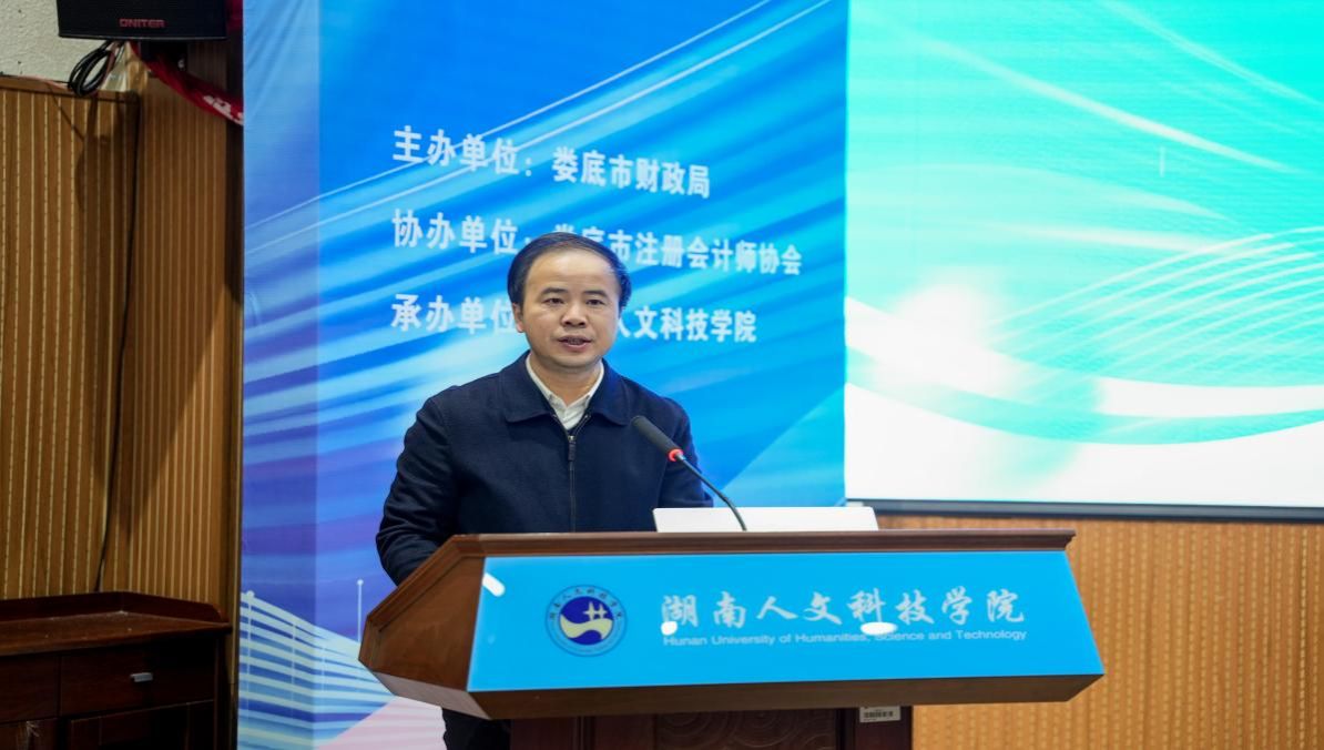 12月9日,娄底市财政局联合湖南人文科技学院举办“娄底市学习贯彻新《中华人民共和国会计法》暨2024年财会人员履职能力提升培训班”在学校匠成楼报告厅举行,商学院院长刘辛田教授主持。