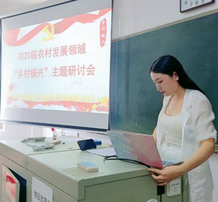 为厚植2021级研究生新生爱农业、爱农村、爱农民的乡村振兴新奋斗思想。9月18日,我院2021级农村发展领域研究生于致远楼411教室开展“乡村振兴”主题研讨会。由领域秘书黄胜男老师主持,农村发展领域全体同学参加了此次研讨会。