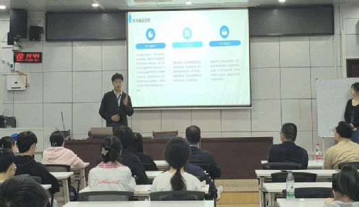 本届校内选拔赛采用双环节评审机制:首环节为限时路演展示,各团队需在8分钟内通过单人或多成员协作完成项目陈述;次环节为专家质询答辩,由评审组针对项目内容发起提问,团队指定主答辩人进行回应。所有参赛队伍均从项目背景、商业模式设计、盈利逻辑及发展前景四大维度展开系统阐述,并对评委提出的技术细节与商业可行性问题作出解答。最终综合两环节表现形成评审团评分。