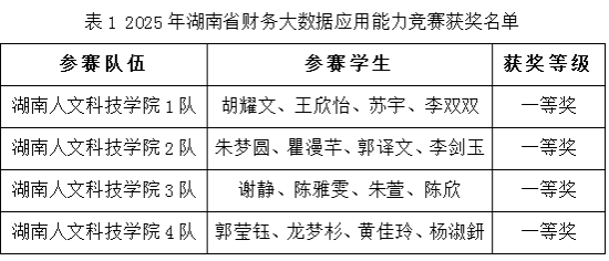 2025年10月31日-11月2日,由湖南省教育厅主办的财务大数据应用能力竞赛、四流融合数智应用能力竞赛相继落下帷幕。全省36所普通本科院校的262支代表队伍共1040余人同台竞技,参赛规模与专业覆盖面创近年新高。beat365商学院由李芳、罗伟祎、粟恒、郑清华4位老师指导的8支参赛团队凭借扎实的专业功底和创新实践能力脱颖而出,最终斩获5项省级一等奖、1项省级二等奖和2项省级三等奖的优异成绩,打破beat365历届成绩最高纪录。特别值得一提的是,财务大数据应用能力竞赛中,4支队伍全部获得省级一等奖,同时beat365被评选为“优秀组织奖”单位。组委会上,裁判长对beat365近年来的赛事组织和成绩给予了高度赞扬和充分肯定。