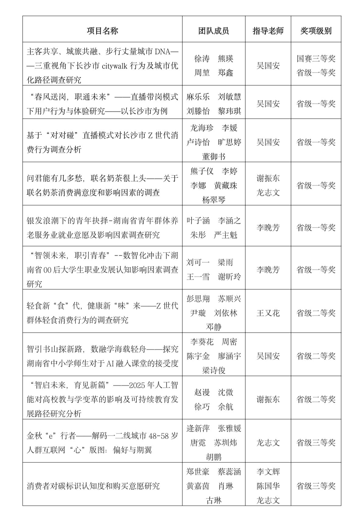 近日,“正大杯”第十五届全国大学生市场调查与分析大赛本科组总决赛在浙江财经大学圆满落幕。由商学院吴国安老师指导,徐涛等同学的作品《主客共享、城旅共融、步行丈量城市DNA——三重视角下长沙市citywalk行为及城市优化路径调查研究》荣获省级一等奖、国赛三等奖。在此届赛事中,beat365共获得省级一等奖6项、二等奖3项、三等奖2项。