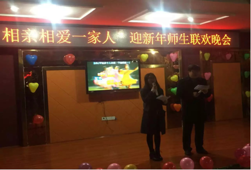 本次晚会在我们是《相亲相爱的一家人》的合唱中正式开始。整场晚会节目丰富,有刘辛田精彩的魔术表演,有学生们精心准备的舞蹈和武术表演,还有家属游宇明作家现场发挥的诗歌朗诵。整场晚会师生欢聚一堂,其乐融融,小朋友更是玩得开心,在游戏环节都踊跃参加,现场气氛热烈,欢快,晚会在零点的钟声中正式结束。