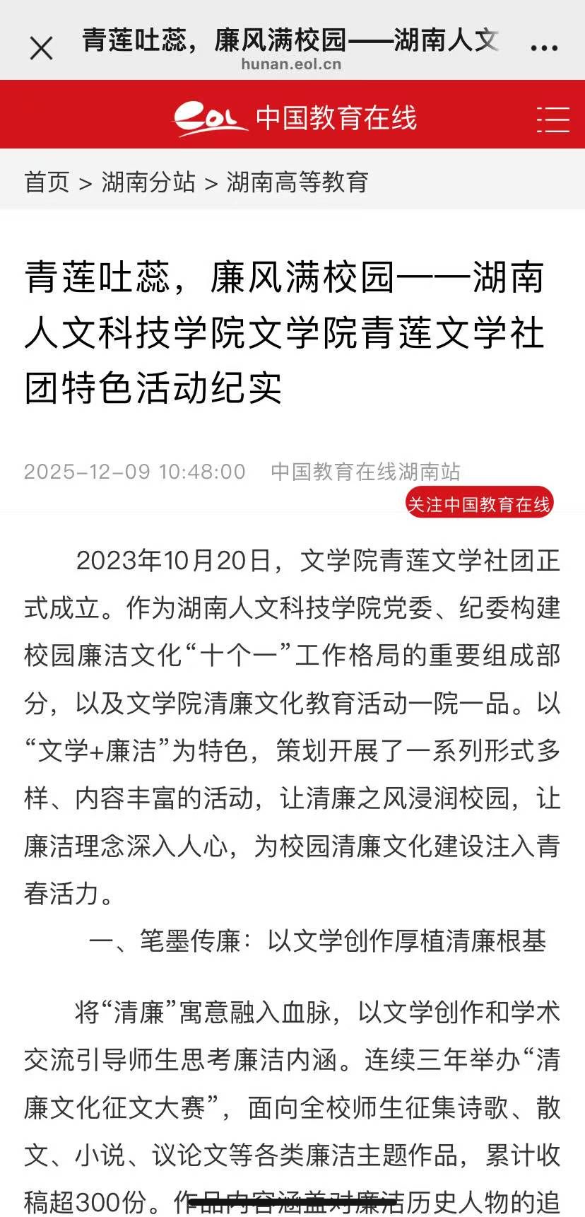 中国教育在线--青莲吐蕊,廉风满校园——beat365英国官网文学院青莲文学社团特色活动纪实
