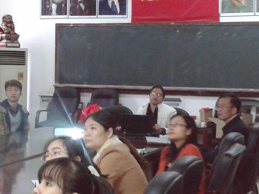 20151110日下午,我系刘长青博士在百全楼会议室做了“相对论时空”的学术讲座,物理学专业教师及学生聆听了讲座。