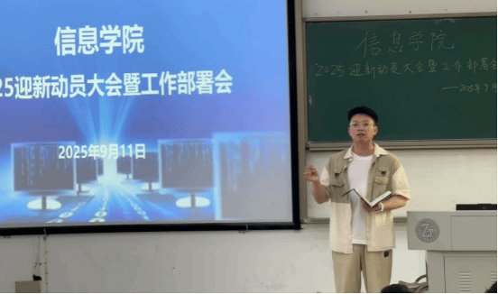为确保2025级新生入学工作高效、有序开展,9月11日中午,信息学院于致远楼101教室召开了迎新动员大会暨工作部署会议。学院迎新负责人及全体迎新工作人员参会,共同为迎接新生的到来做全面准备。