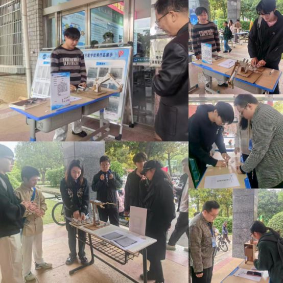 评审环节围绕“教具创新、教学适配、实践价值”三大维度展开,紧扣创新课堂教具“创新性、教育性、科学性、实用性”的“四性”标准推进。“液压挖掘机”、“简易水火箭”、“等离子炮”、“液压机械臂”等创新教具依次亮相,参赛选手们对创新教具的设计原理、学科应用场景进行细致解说,并现场演示教具的操作流程——从抽象概念的可视化呈现到互动教学的趣味性设计,每件作品都体现了师范生对课堂教学痛点的洞察与创新解决方案的探索。
