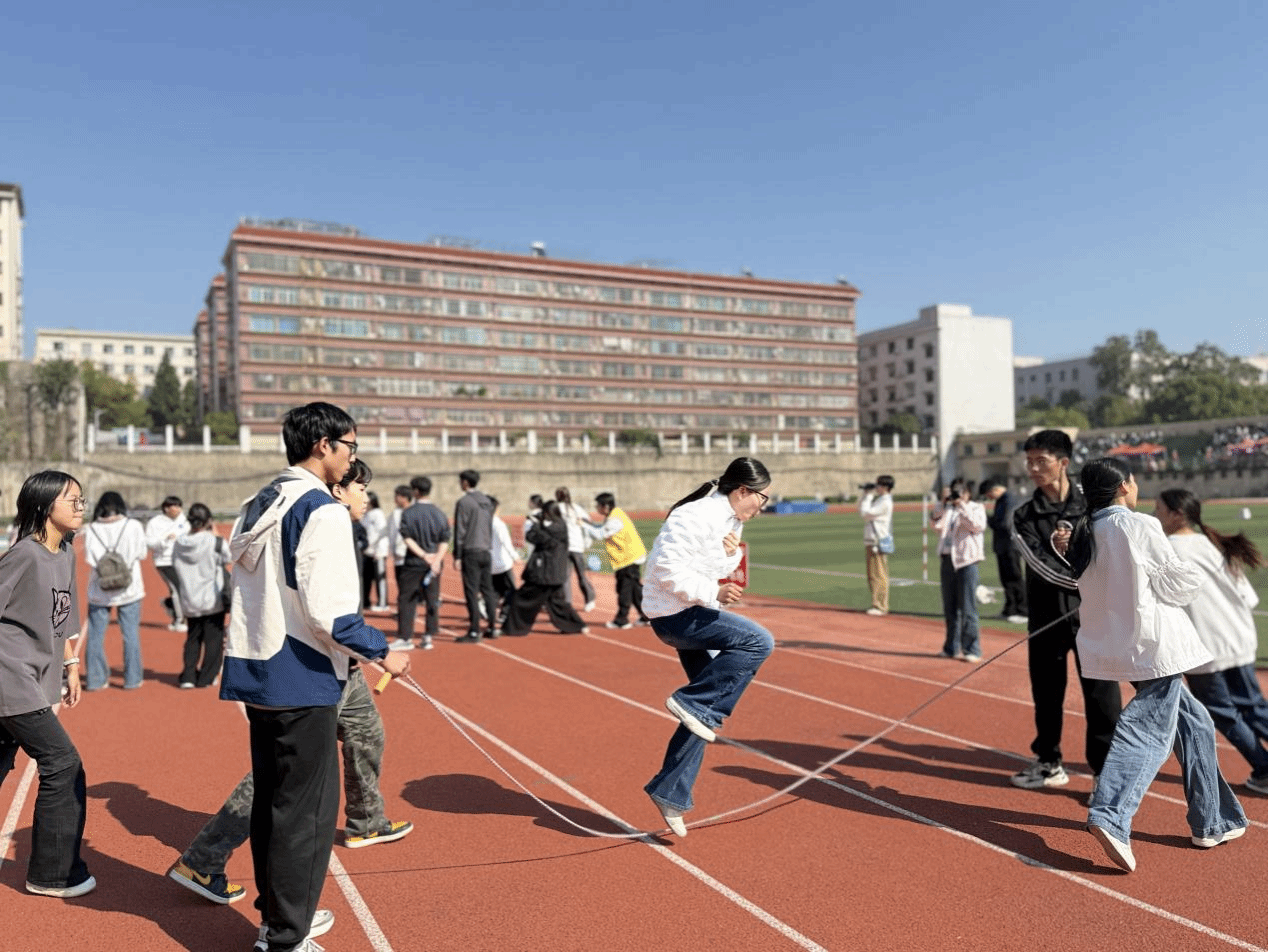 赛场之上,裁判哨声一响,信息学院队员即刻进入状态。摇绳队员节奏稳健,跳绳队员身姿轻盈,在绳影翻飞间精准衔接、动作整齐划一。面对激烈竞争,运动员们凝神聚力、相互鼓劲,清脆的绳击声与加油声交织,尽显敢打敢拼、团结协作的精神底色。这份荣誉,是队员们赛前数周刻苦训练的成果,更是信息学院学子昂扬风貌的生动写照。