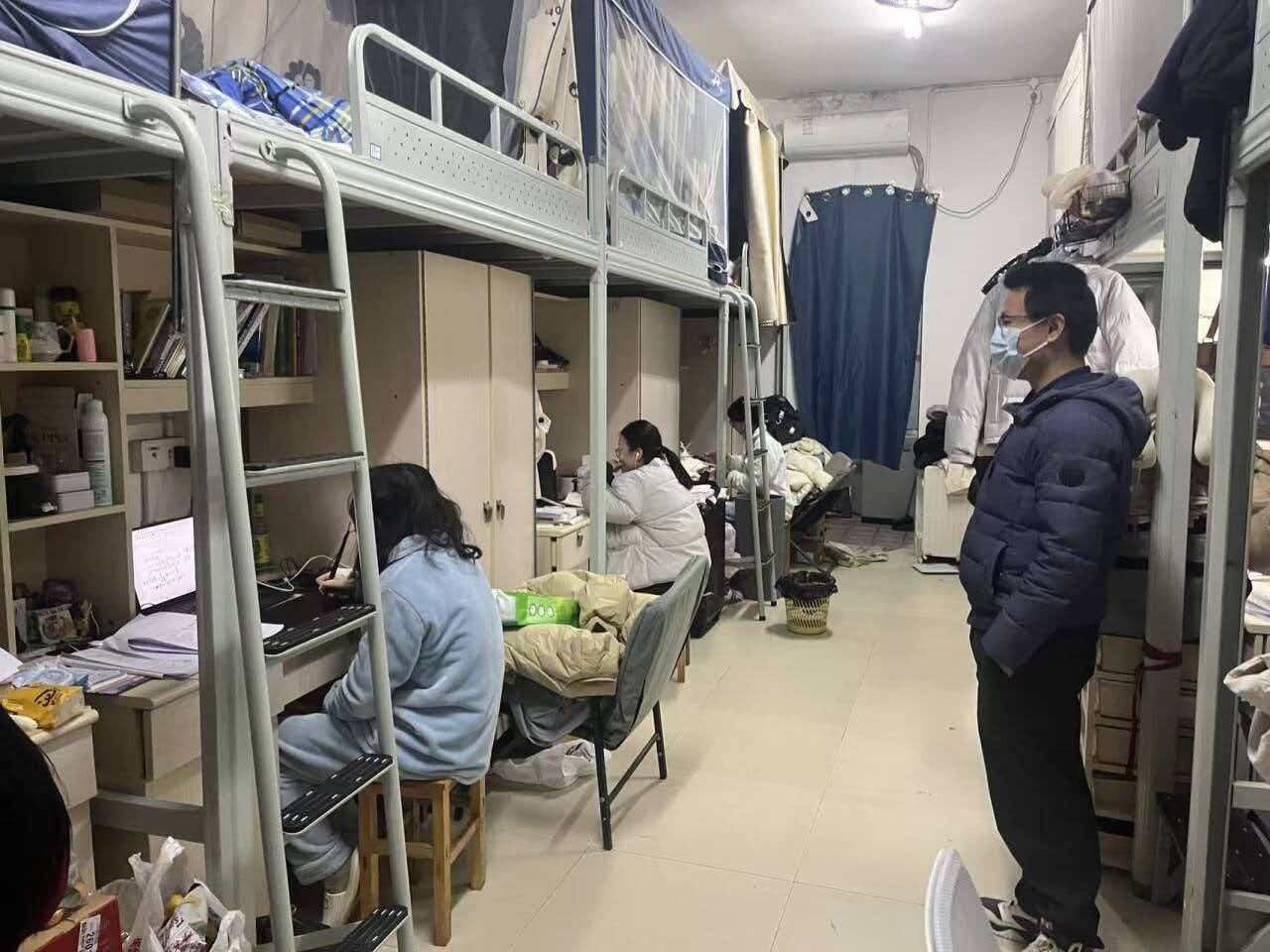 2026年1月11日晚,学院领导班子,全体班主任及辅导员共同参与,深入学生寝室开展宿舍安全排查与考前教育工作。