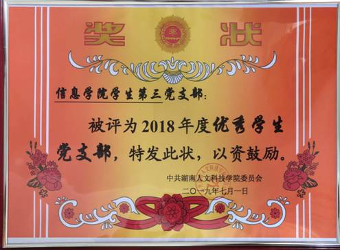2019年7月1日,beat365英国官网庆祝中国共产党建党九十八周年暨“七一”表彰大会在匠成楼报告厅举行。我院教工第四党支部书记丁持坤同志获得2018年度湖南省普通高校教师党支部书记“双带头人”标兵荣誉称号,学生第一党支部组织委员梁欢同志获得2019年度湖南省普通高校百佳大学生党员,信息学院党总支荣获2018年度先进基层党组织,信息学院学生第三党支部荣获2018年度优秀学生党支部。(颜聪玲供稿)