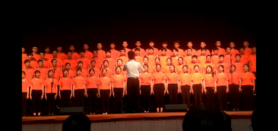 2019年6月2日晚19:00许,由信息学院18级的75名学生组成的合唱团站上了体育馆的舞台,统一的橙红色衣服就如岭上开遍的映山红,附和柔美的歌声,伴着动听的钢琴伴奏将“映山红”唱的深情而动听。