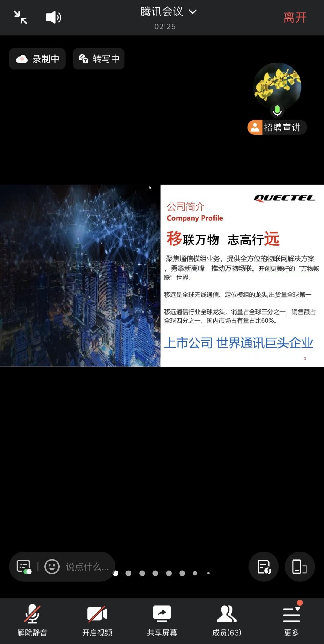 信息学院携手移远通信公司举办线上招聘会