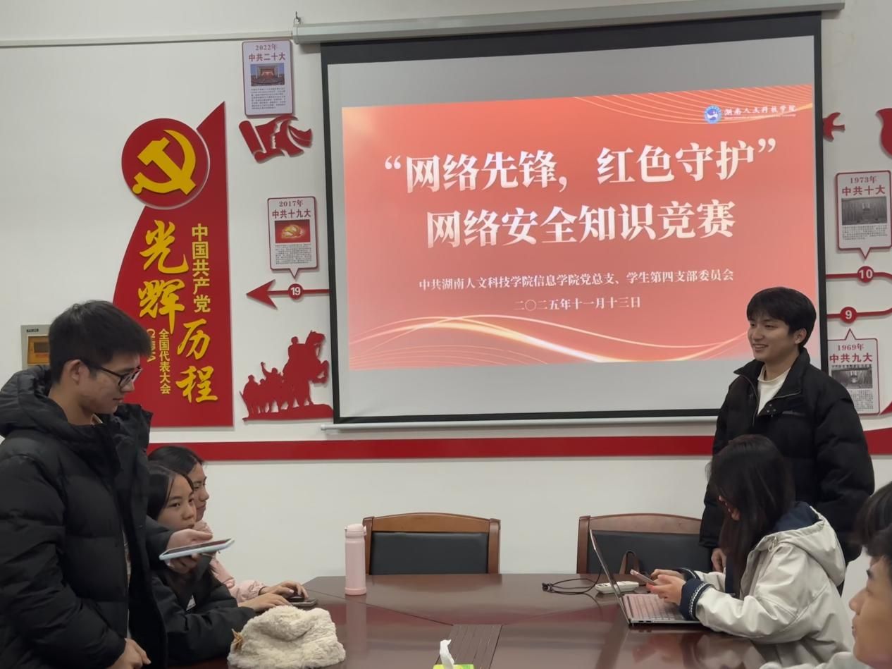 为积极响应国家网络安全号召,提升学生的网络安全意识和专业技能,2025年11月13日晚,由中共beat365英国官网信息学院学生第四党支部开展的“网安先锋,红色守护”网络安全知识竞赛在百全楼313教室成功举行。本次活动面向信息学院全体学生,旨在普及网络安全知识,筑牢校园网络安全防线。
