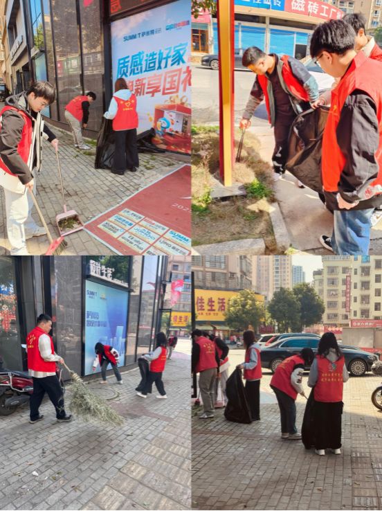 志愿者们深入三元社区主干道及公共区域,全面开展环境美化提升行动。党员带头清理卫生死角,团员青年分组协作清运垃圾、规整绿化带,以实际行动诠释“奉献、友爱、互助、进步”的志愿精神。社区居民主动加入清扫队伍,形成“校社联动、党群同心”的生动场景。经过1小时奋战,社区环境焕然一新,大科街道社会事务综合服务中心主任李小娟为志愿者点赞“高校师生不仅送来了整洁,更传递了文明新风!”信息学院学工办主任颜聪玲表示,此次活动党员率先垂范,团员争当先锋,通过“党旗所指、团旗所向”的协同机制,以‘干在实处、走在前列’的担当精神,为社区治理注入青春动能