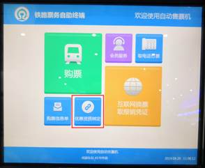 车站取票机绑定资质:(持身份证、火车票优惠卡)