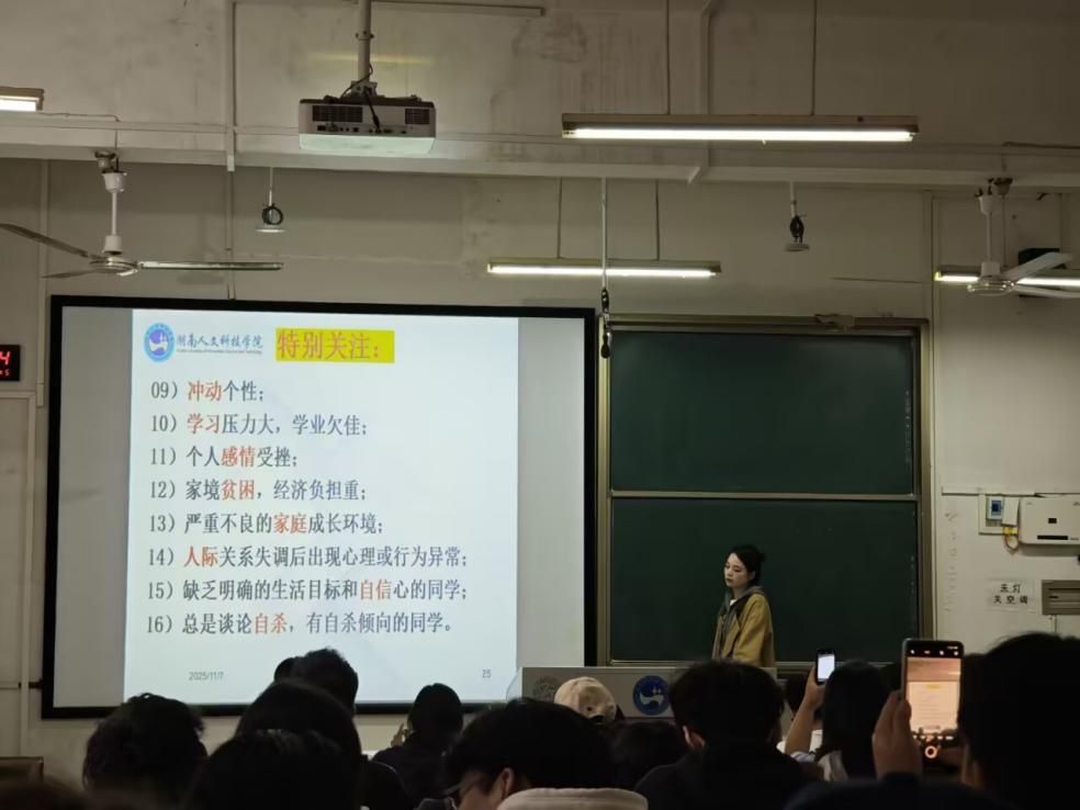 2025年11月7日,信息学院在百全楼103开展信息联络员专题培训,院党总支副书记朱舒腊、心理专干辅导员付妙主讲。各班级心理委员,文建委员参会。