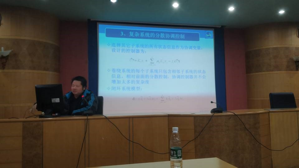 侯博士首先介绍了多电机卷绕系统的主要用途、接着分析了卷绕系统控制中面临的挑战和需要攻克的技术难点,从国家战略高度说明了开展多电机卷绕系统控制研究的必要性,最后介绍了自己从事该系统控制研究的主要研究成果,并结合自己从事科研的亲身经历说明了怎么从实际中提炼科学问题,怎么从生活常识挖掘出解决问题的方法。整个报告会理论与生活实际结合、知识性与启发性并存,使师生们深受启迪,对如何进行科学研究有了更深的理解和认识。