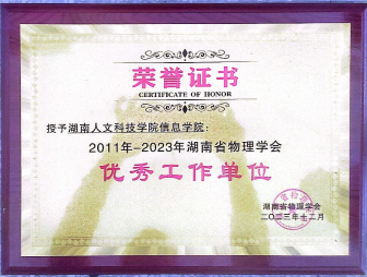 6. 指导学生参加湖南省大学生物理竞赛和力学竞赛等,荣获一等奖1项,二等奖3项,三等奖10余项。