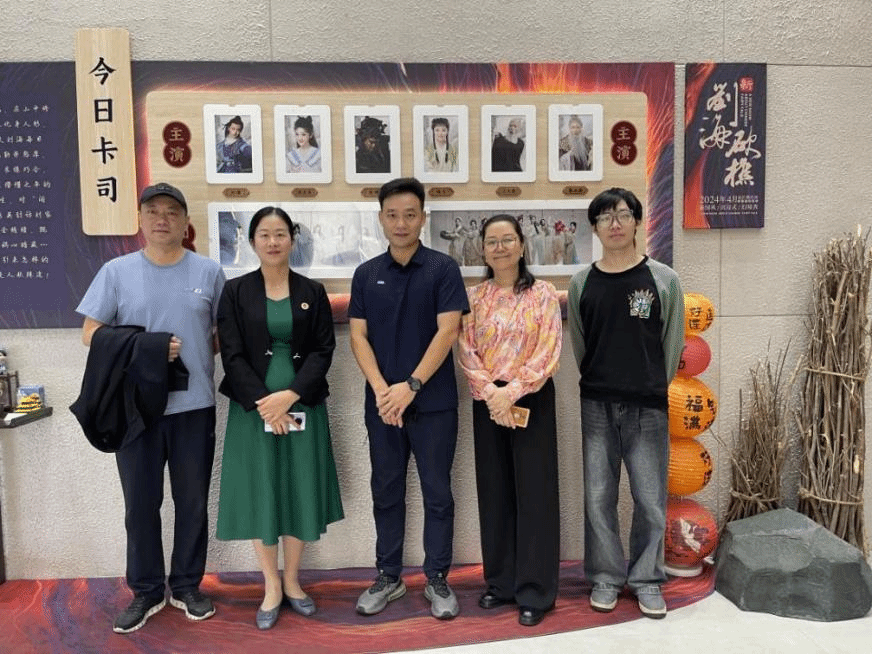 10月16日,音乐舞蹈学院院长刘利连与教务处刘仲春老师一行前往湖南省花鼓戏剧院考察。考察团队参观了剧场排演与创作环境,详细了解了花鼓戏的传承发展现状、经典剧目《新刘海砍樵》的创排进展以及青年演员培养机制。剧院方面分享了在传统艺术保护与创新方面的实践经验。