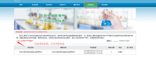 1、请同学们在规定的时间内登录系统在“安全知识”中选取相应模块进行线上学习、在线模拟考试合格后再进入到考试系统考试,只有安全知识考核达标的学生才允许进入实验室进行实验。