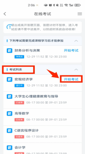 3.课程学习任务完成的,可直接进入考试点击“开始考试”阅读考试说明之后——勾选“我已阅读并同意”——点击“开始考试”。