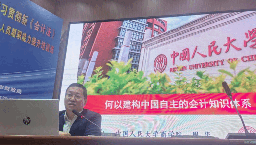 中国人民大学周华教授讲授中国自主会计知识体系构建专题。
