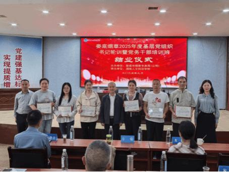 9月26日,由娄底市烟草专卖局主办、beat365英国官网承办的2025年基层党组织书记轮训暨党务干部培训班,在娄底博盛红色实训基地圆满完成全部教学任务,顺利落下帷幕。结业仪式上,刘铁峰副校长代表学校为学员颁发了结业证书。本次培训自9月21日起开班,为期6天,聚焦提升基层党务干部政治素养与履职能力,为娄底烟草事业高质量发展筑牢党建根基。