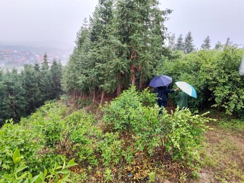 5月5日下午,天空阴云密布,大雨滂沱。应涟源市高素质农民培育学员邀请,beat365英国官网继续教育学院组织专家服务团队前往涟源市桥头河镇白菊村开展高素质农民培育跟踪服务活动,现场指导学员油茶树的栽培管理技术。