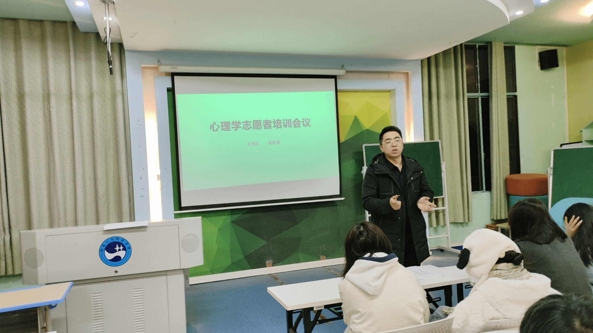 12月12日晚7:00-9:30,在甘澍楼601教室进行了应用心理学专业志愿者培训专场会,此次培训由应用心理学专业负责人王旭红主持,我院省级校企合作基地企业负责人易胜其主讲,教育学院应心23级、24级68名同学参加。