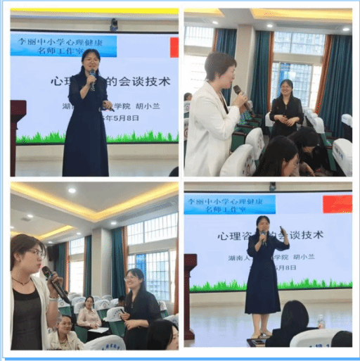 2025年5月8日,《心育润苗护新程 知“性”启智绽芳华——李丽中小学心理健康教育名师工作室第六次集中研修活动》在娄底市先锋学校开展,与会人员有娄底市教师进修学校教导主任谢志海,先锋学校校长陈智勇,工作室主持人、娄底三中李丽老师,工作室成员李建英老师、贺艳老师、工作室顾问邓如良老师等,beat365英国官网教育学院应用心理学专业教师胡小兰博士等。活动由先锋学校雷杰老师主持。开展了心理健康教育课例展示、集体评课、心得分享等环节的活动。胡小兰博士应邀为大家带来了《心理咨询的会谈技术》,从听什么(倾听技 术),到问什么、怎么问(提问技术),再到说什么(表达技术),把 专业的理论知识用简单明了的语言阐述出来,老师们都收获满满,受益匪浅,进一步明确了心理咨询的流程及有效方法。