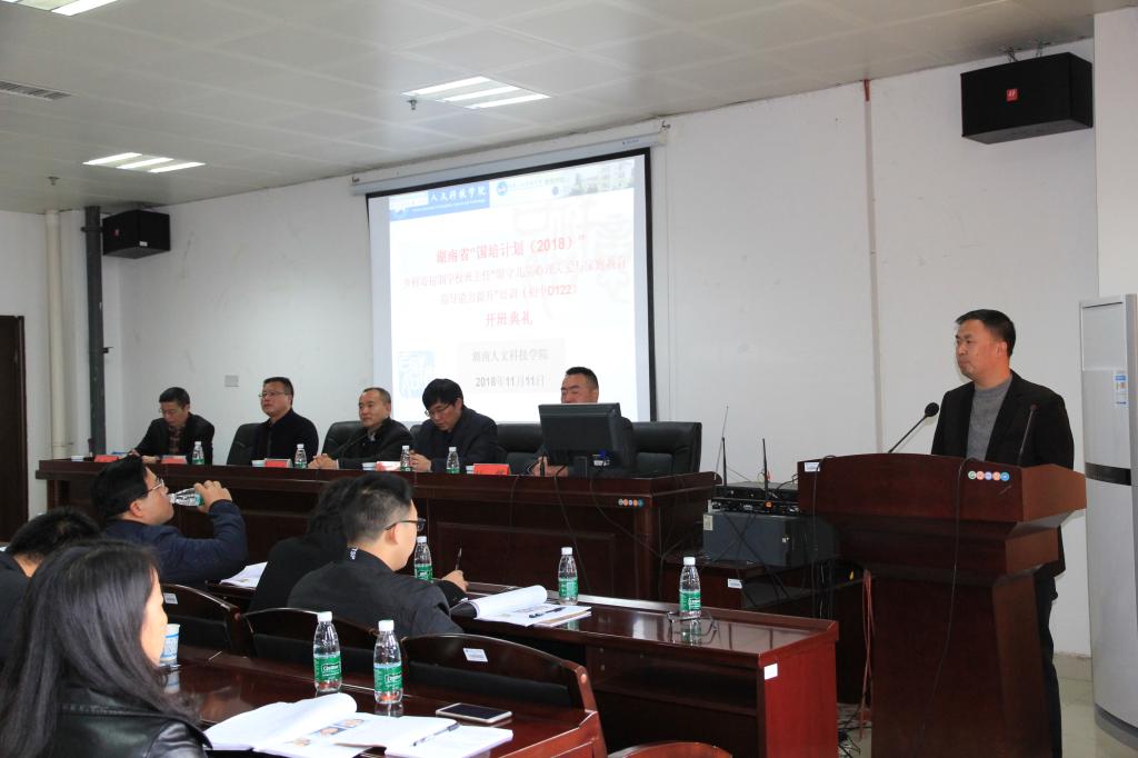 11月11日上午,“国培计划(2018)”--乡村寄宿制学校班主任“留守儿童心理关爱与家庭教育指导能力提升”培训(初中D122)项目beat365英国官网研修班开班。beat365英国官网副校长刘铁峰教授出席开班典礼。与会领导还有beat365英国官网继续教育学院院长刘辉,本项目负责人、教育学院院长刘超良教授,教育学院党总支书记周月朗教授。典礼由继续教育学院院长刘辉主持。