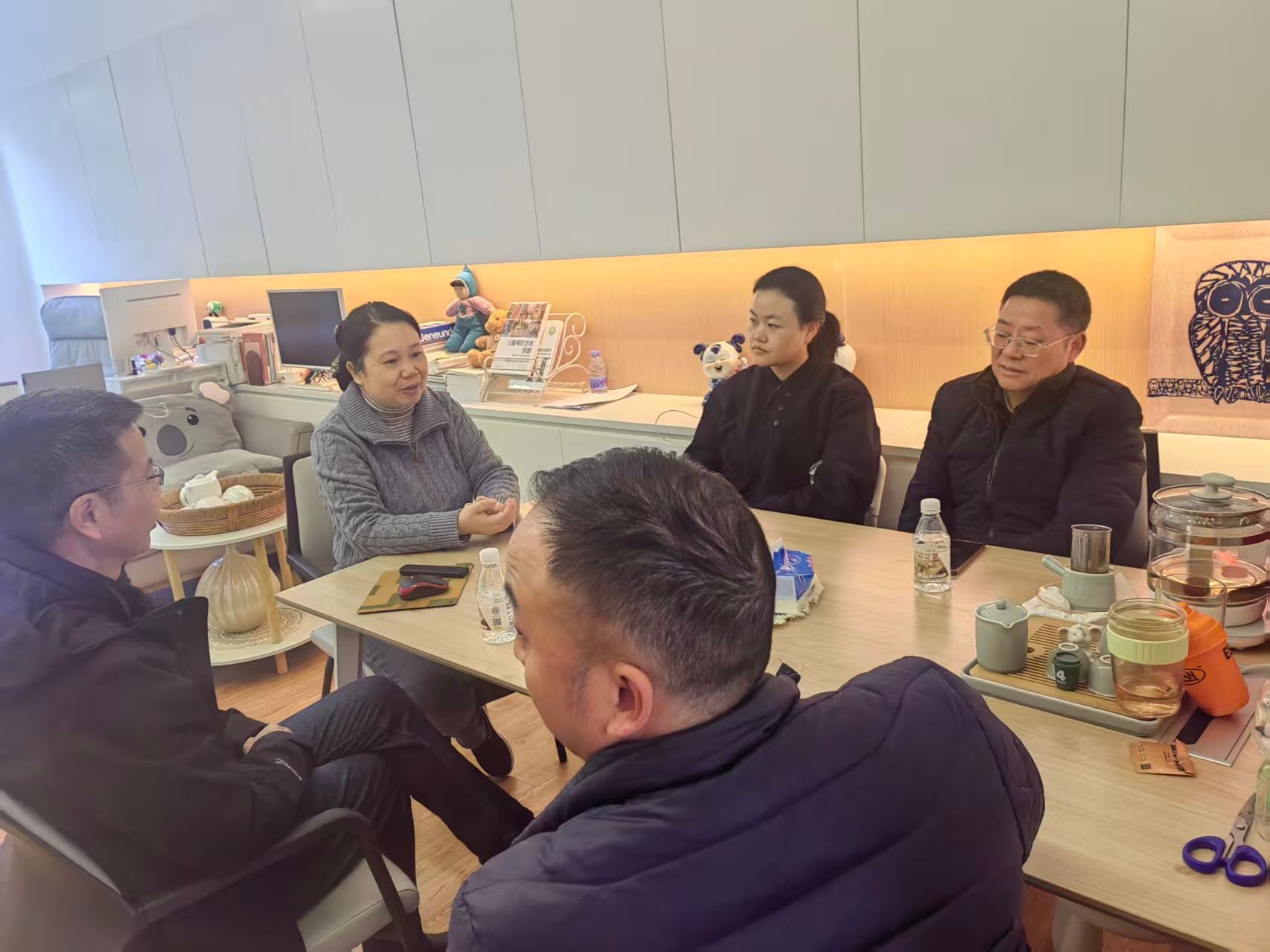 在深圳博才教育集团总部,调研组一行与集团董事长文英和集团负责幼教板块的总经理云瑛,以及业务经理周老师等召开了调研座谈会,就该教育集团企业文化、发展历程、业务布局、核心优势深圳区域对教育行业师资的需求情况进行了较为深入的交流。双方共同表达了对未来进一步深化合作交流的期望,更明确了未来实习与就业基地建设与人才培养的优化方向。