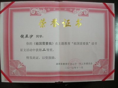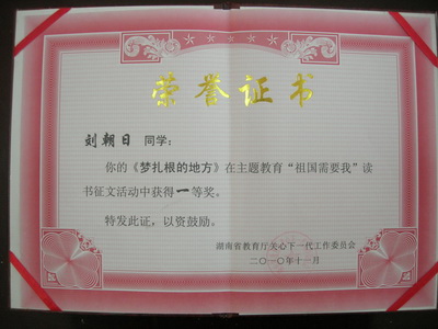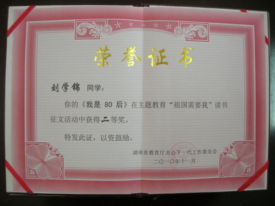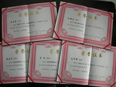“祖国需要我”主题征文活动证书