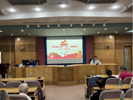6月18日下午,离退办党总支特邀学校马克思主义学院伍揆祁教授为离退休党员作了题为《中共党史上的“三对”及其启示》的党史教育专题讲座。离退办党总支书记姚春平主持,近百名离退休党员参加了讲座。