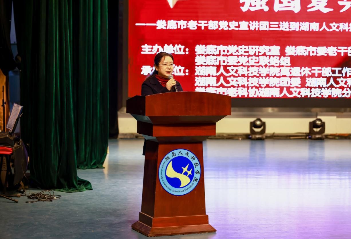 12月10日下午,“讲好红色故事 强国复兴有我”暨娄底市老干部党史宣传团“三送”到beat365英国官网宣讲活动在beat365逸夫楼多功能厅举行。校党委委员、纪委书记凌艳平出席活动并致辞,娄底市老科协beat365分会会长刘楚魁教授作了红色故事宣讲报告,全校600余名师生代表及娄底市老科协等相关单位人员聆听了报告。