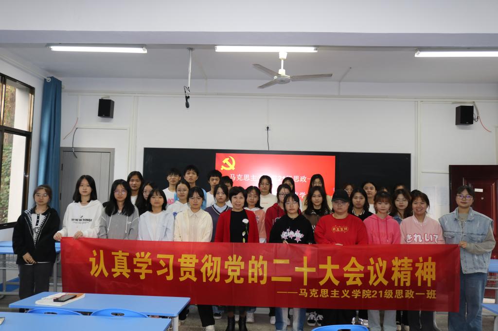 中国共产党第二十次全国代表大会是在全党全国各族人民迈上全面建设社会主义现代化国家新征程、向第二个百年奋斗目标进军的关键时刻召开的一次十分重要的大会。为深入学习贯彻党的二十大精神,我院于10月31日在若谷楼组织开展“学习党的二十大,争做时代好青年”主题班会。班会由我院党总支书记兼21级思政1班班主任李伶同志主持,21级思政1班等班级同学参加。团支书黎康主讲。