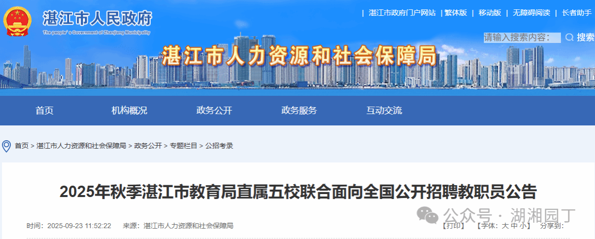 在湛江市教育局、湛江市人力资源和社会保障局官网发布招聘公告。