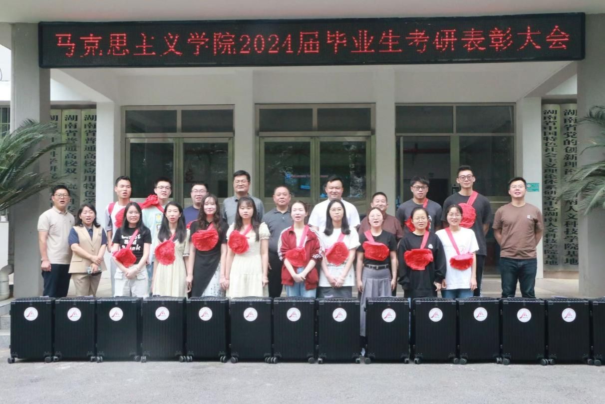 随后,党总支书记张卫明作总结发言。他强调马克思主义学院将继续努力为考研学子们提供优质的学习环境和教育资源,助力马院学子的考研之路,并殷切期望马院学子们都能在学习征程上无所畏惧,奋勇前行,以梦为马,不负韶华。最后,学院领导老师为考研录取学生发放行李箱等奖品并于若谷楼门前合影留念。