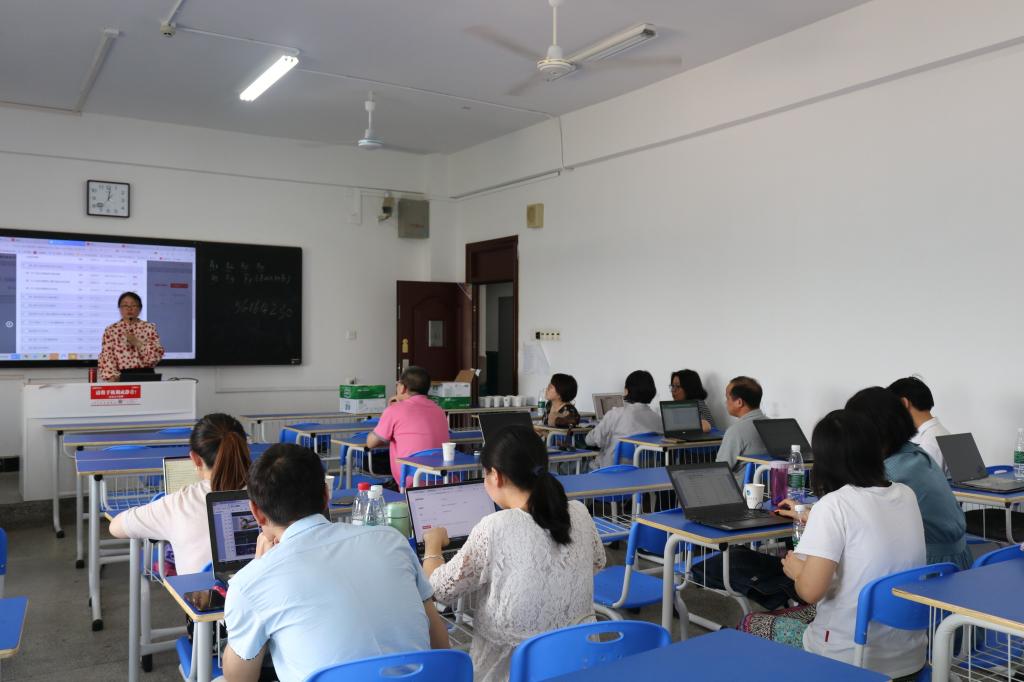2021年6月8日下午3:00,培训第一课在致远楼603教室进行。本次培训邀请人民网技术负责人李文英主讲,副院长杨国辉主持。本次培训的主题是《网络教学平台的管理与应用》。本次教学,李文英结合优学院等国内教学平台,针对课前准备、创建课堂、点名签到、讨论题设置、作业布置、考试测评等多方面的操作进行了细致全面的讲解,在此过程中,老师们认真听培训师的讲解,在自己的电脑上进行操作实践。接着老师们积极讨论,相互帮助,提出在使用中遇到的问题并提出教学平台可优化方面的意见与期望,培训师针对老师们的困惑进行了解答,接受了老师们的意见,表示会积极改善该平台的教学功能,并重点提到该平台现已有可发现刷课刷题现象的功能,除此之外其还可以保留教学数据,对老师参加教师技能竞赛有重大的辅助性作用。
