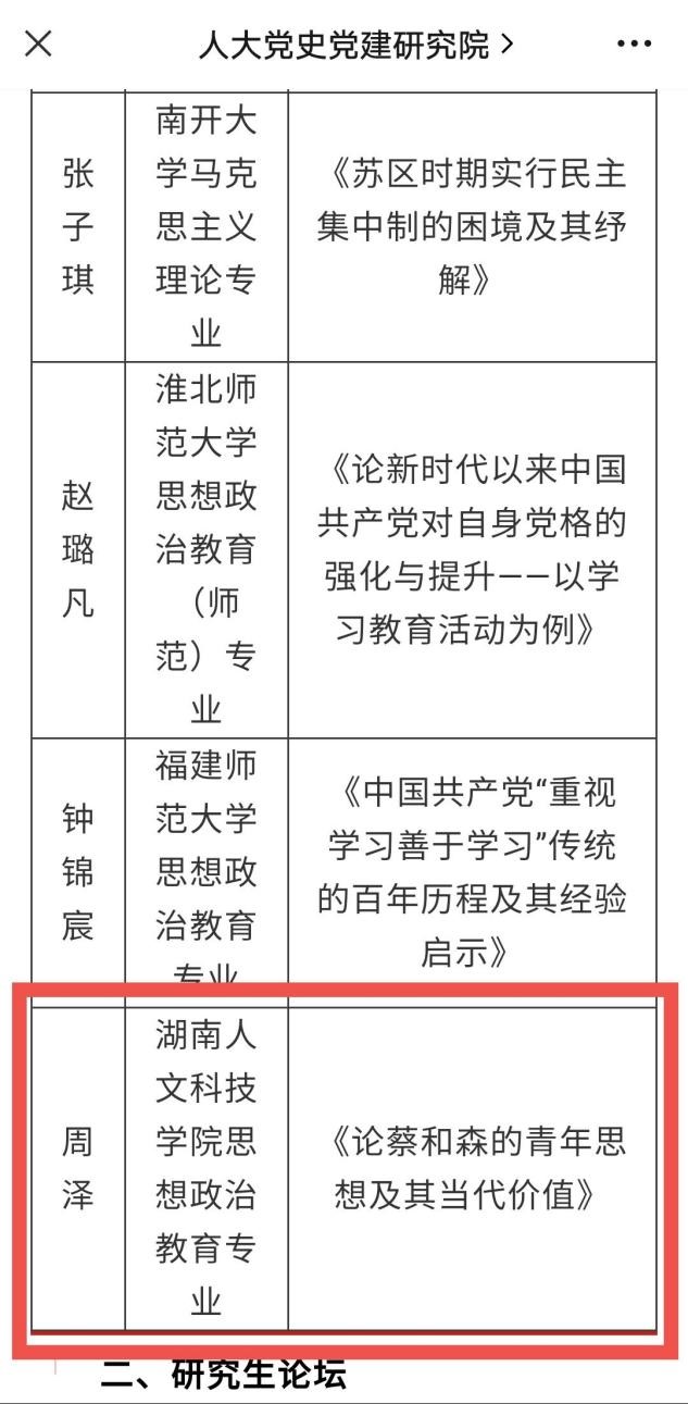 我院周泽同学撰写的论文入选全国高校首届“中共党史党建英才”学术冬令营