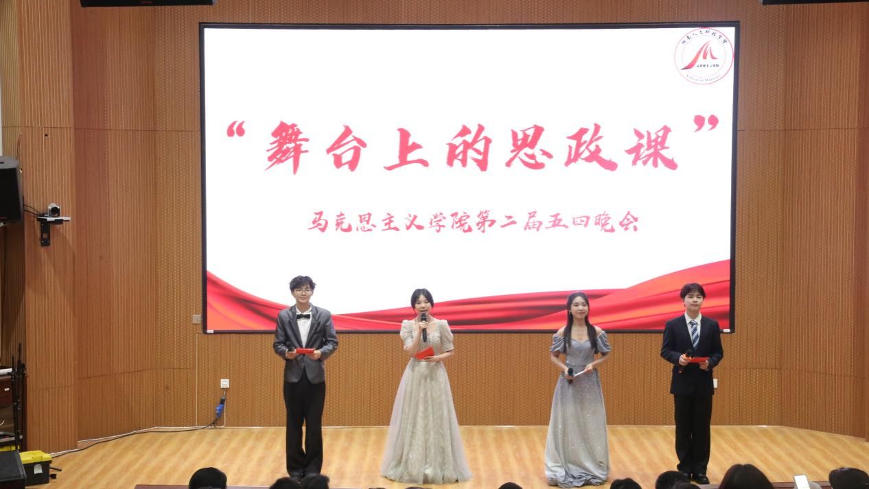 4月25日晚,马克思主义学院于匠成楼报告厅举办了一场别具一格的晚会——“舞台上的思政课”。校党委委员、副校长谭峰亮、校团委书记刘佳、马克思主义学院党总支书记张卫明、院长于意等领导与学院师生齐聚一堂,共赴这场融思想性与艺术性于一体的青春盛宴。