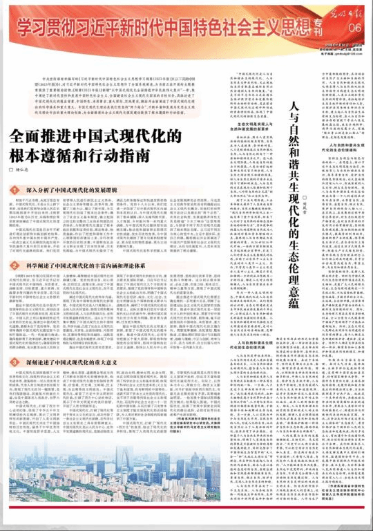 近日,我院刘风雪博士在《光明日报》第06版“学习贯彻习近平新时代中国特色社会主义思想”专刊发表署名理论文章《人与自然和谐共生现代化的生态伦理意蕴》,人民网、中青网等网站全文转发了此篇文章。