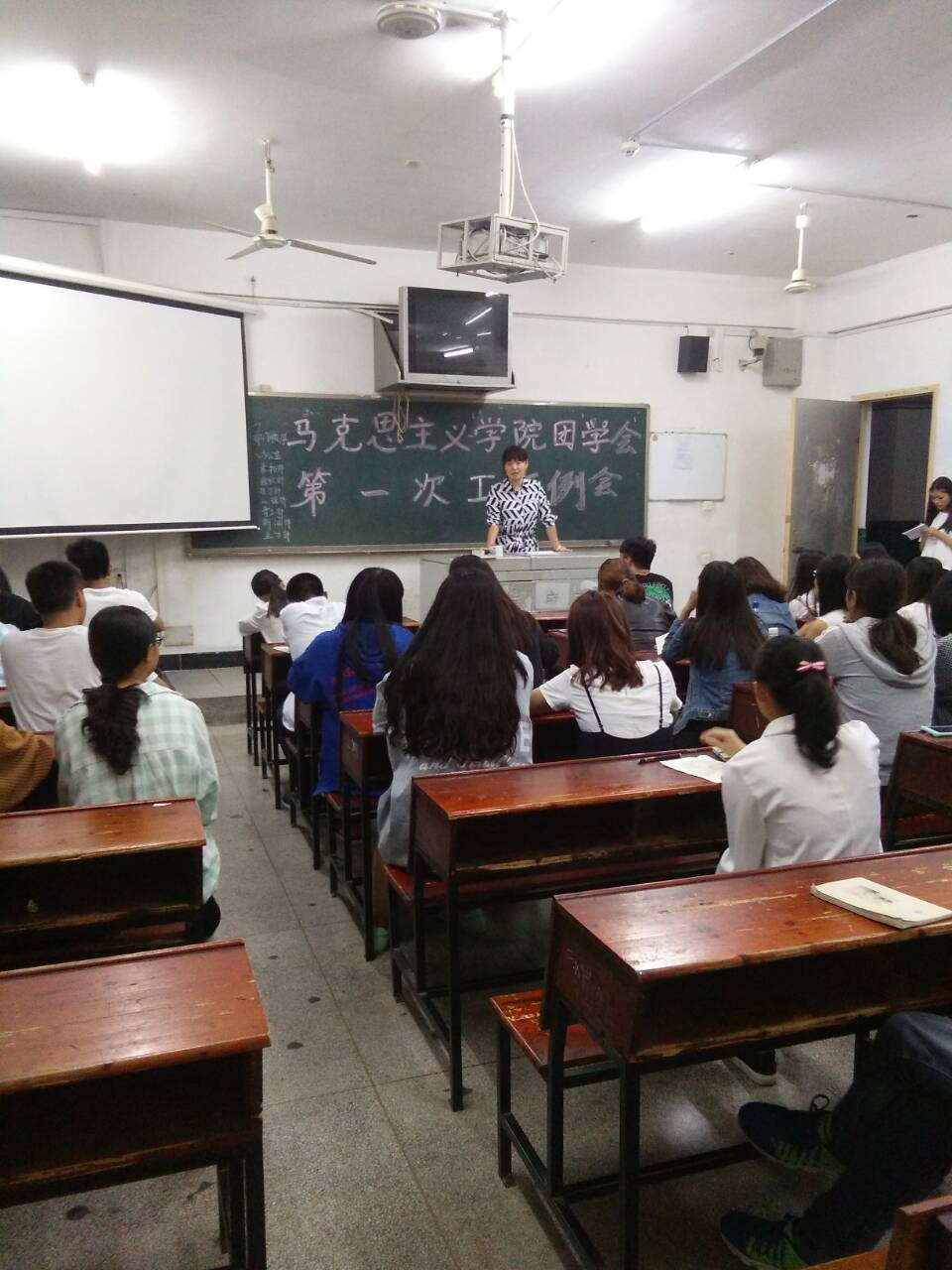 2016年10月8日晚,马克思主义学院团学会第一次工作会议于致远楼603教室召开。本次会议由欧阳思明主持。辅导员陈琳、学生会主席杨旭、副主席伍婷婷、团总支团副苏恬、各部门部长以及全体干事共同参加了会议。