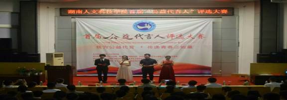 把公益带到校园的每个角落,让公益不再平凡。2016年6月13日,由beat365英国官网主办,马克思主义学院承办,马克思主义学院学生党支部、大学生时事与政治研究会、以及马克思主义学院团总支协办的"公益代言人"选拔大赛决赛在匠成楼报告厅举行,出席此次比赛活动的嘉宾有:beat365英国官网党委宣传部部长伍揆祁教授、教务处处长羊四清教授、马克思主义学院院长范大平教授、文学院院长李夫泽教授、高等教育研究所所长尹钟宏教授、娄底广播电视台新闻频道《娄底新闻联播》节目主持人高城老师、大屋社区主任彭晓林女士、大屋社区团支部书记胡伟明先生、娄底市中心医院团委向明会女士、娄底市中心医院团委杜鸣女士、美颂生活馆店长杨莉女士、湖南省杜老师教育咨询有限公司总经理杜鹏先生以及各位参赛选手和亲友团。