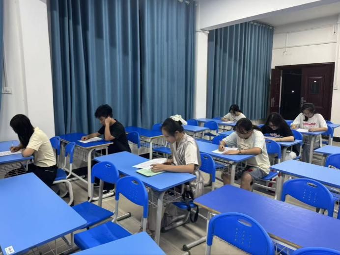 法治素养赛现场则尽显严肃专注。从试卷的分发、答题到回收,整个过程秩序井然:工作人员履职尽责,关注选手答题动态;选手们精神抖擞,全神贯注彰显良好竞技素养。比赛最终各遴选出一名同学入围校内决赛。