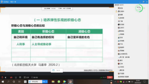 各班在班主任和心理委员的组织下观看中南大学叶湘虹副教授主讲的心理健康视频。视频中,叶教授针对超长寒假带来的心理影响和新学期重启后的心理状态两个版块,分析了学生疫情期间心理会出现的问题,并给出相应的解决建议。同时,也就学生情绪问题,提供一系列心理调节方法。我院学生积极听取了视频中教授的建议,并结合自身现阶段所存在的一些复杂情绪、心理问题,尝试学习一些相应的心理调节方法,调整好自己的心理状态。