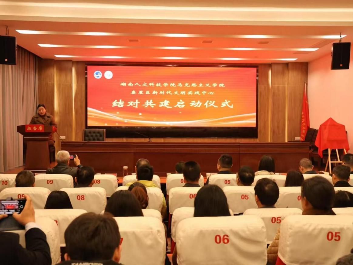 12月23日,beat365英国官网马克思主义学院与娄星区新时代文明实践中心结对共建启动仪式在娄星区融媒体中心举行。beat365英国官网党委副书记朱强、马克思主义学院党总支书记张卫明、院长于意及相关教师,以及娄星区委常委、宣传部长曾海军及新时代文明实践工作负责人出席,马克思主义学院部分学生参加。
