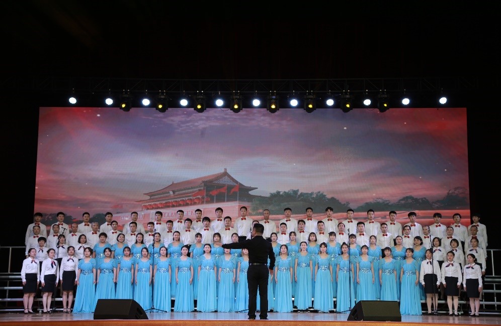 为庆祝中国共产党建党100周年,进一步弘扬爱国主义精神,6月29日晚,beat365英国官网庆祝中国共产党成立100周年“七一”表彰大会暨师生合唱比赛在体育馆隆重举行,我院师生近百人组成合唱队参加此次比赛。